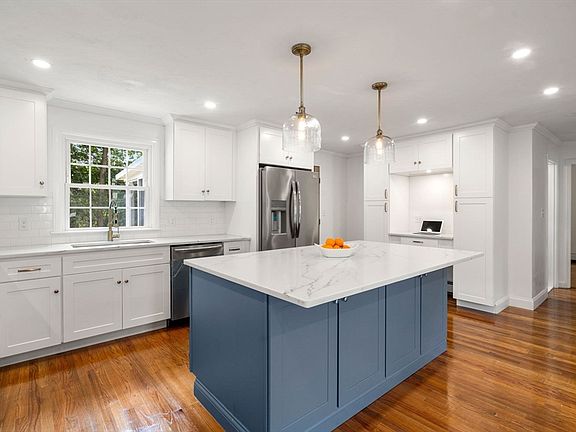 Stunning 2-bedroom ranch featuring gleaming hardwoods throughout! This beautifully gutted and completely redone home offers an open kitchen and living room with a cozy fireplace, perfect for entertaining. The kitchen boasts a large island, new cabinets, and gorgeous quartzite counters. With 2.5 baths, convenience is always at your fingertips.A handy mudroom connects the attached garage to the home, adding practicality to your daily routine. The sunny lower level is fully finished, featuring a family room, laundry area, and a full bath—great for relaxation and activities. Step outside to the expansive 3-season porch, ideal for enjoying the outdoors in comfort.Located on a quiet street in the desirable Nelson Place neighborhood, you’ll enjoy easy access to the highway. This home truly is a gem!