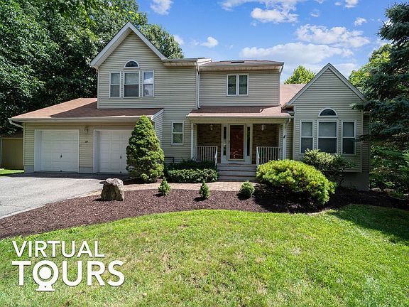 Move-in ready contemporary colonial with 4 bedrooms, 2.5 baths, and 2,426 square feet on a quiet cul-de-sac in Riverdale! Beautiful original owner colonial has so much to offer, including sweeping cathedral ceilings, hardwood floors, spacious dry basement, and large backyard with deck, perfect for outdoor entertaining all located on an acre of beautifully landscaped property! You're welcomed inside by a formal living room with high ceilings, fan fixture, and a large picture window overlooking the front yard. Open floor plan flows nicely into a formal dining room, and spacious eat-in kitchen with plenty of cabinet and counter space, solid surface countertops, informal dining area, and stainless-steel appliances. Kitchen overlooks warm and welcoming family room, complete with sliding doors to the back deck and cozy fireplace, perfect for enjoying on chilly evenings. 4 large bedrooms, including primary bedroom suite with walk in closets and extra-large en-suite bath with dual vanity, walk-in glass shower, and oversized soaking tub. Basement has high ceilings and plumbing for potential finishing and extra bath. Two- car garage. Private backyard with fantastic deck overlooking level yard and woods. Full house generator and underground sprinkler system. Great location near excellent schools. Easy access to major highways, just minutes from Rt 23, I 287, I 80. Don't miss the chance to own this special home!