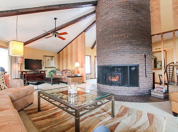 Elegant well cared for 4BR, 3 Bath contemporary on private lot in a popular Lansing neighborhood. Wonderful natural light, cathedral ceilings, exposed beams, 360 degree circular custom built brick fireplace, oversized updated eat in kitchen with granite counter tops and gleaming oak flooring. Master suite with walk in closet and bonus sitting room/nursery. Lower level guest suite with mini kitchen, perfect for company or older children. Excellent outdoor living space with distant lake views. A great house for entertaining! MUST SEE!