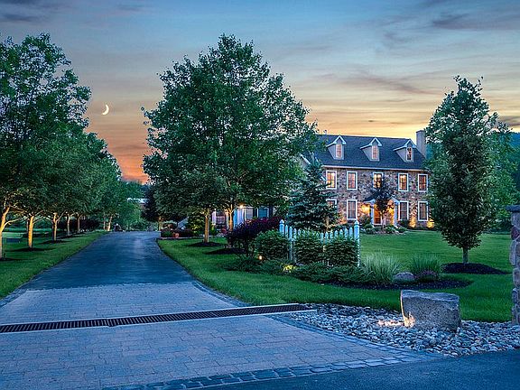 Welcome to Stoudt's Creek-an exclusive gated community of 4 distinctive homes. Transferred original owner is sad to leave & has priced this gem to sell! This home provides elegant living & expert craftsmanship w/its many custom features & woodwork. With a view of preserved rolling farmland to the west, along w/gorgeous sunsets, this home offers gracious indoor & outdoor entertaining for both friends & family in all seasons. Offering 4-5 bedrooms, 4 1/2 baths (including a 1st-floor den w/a full bath that lends itself to a bedroom), 3 fireplaces (one outdoor), gleaming hardwood floors, double staircases, dramatic 2-story family room w/wet bar, well-appointed gourmet kitchen w/sunny breakfast nook, formal living room & dining room, & luxurious master suite w/closets galore. Must be seen to be appreciated. The exterior is graced w/beautiful landscaping & water features, huge Trex deck, fire pit & patio, 3-car garage & more. Easy access to I-78 & 611 (Riegelsville bridge is just 5 min.). Also recently added 21x27ft. Pergola with remote screens and remote louvered ceiling. A propane fireplace compliments the deck. Completed 2023.