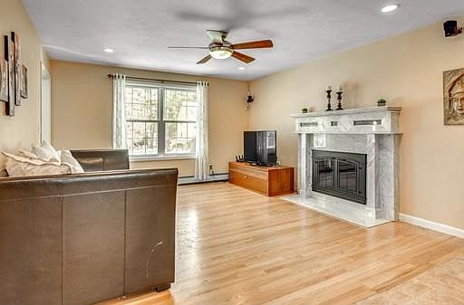 Natural sunlight floods through the over-sized windows on this East facing Colonial home. Featuring 4 large bedrooms and 4 full bathrooms, this home has the space you're looking for. Interior features include tons of recessed lighting, gorgeous marble fireplace, fresh interior paint, new carpeting, refinished hardwood floors, and open foyer with granite flooring. Over-sized eat in kitchen features SS appliances, tons of cabinet space, and granite counters that flows perfectly to family room. Additional features include private backyard with kids play area, 24x24 finished garage, storage shed, and over 700 sqft of finished space in the basement with full bath! This beautiful home is located on a quiet cul-de-sac in an exceptionally convenient location just minutes from Rt 95 & 495, the commuter rail, grocery stores, shopping, & more! This is a must see, call today for more details!