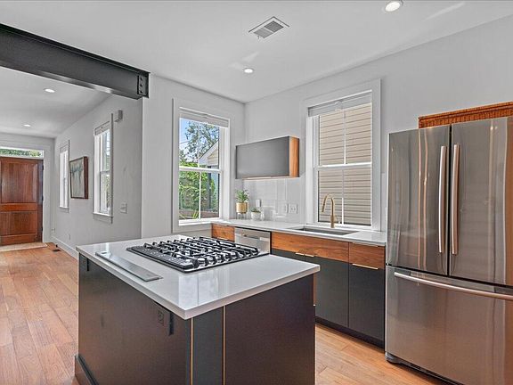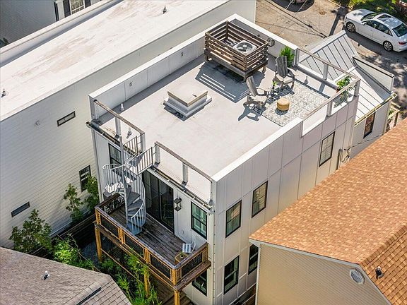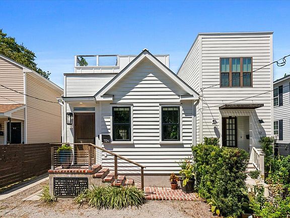 Welcome to this downtown Charleston treasure, previously featured on HGTV! This exquisite home, built in 2020 on the site of a historic Freedman's Cottage, masterfully blends modern design with historic charm. As you step inside, you'll be greeted by an inviting layout that effortlessly combines style and functionality. The rooftop deck is perfect for relaxation and entertaining, offering stunning views of the surrounding cityscape. Each of the three spacious bedrooms features its own elegantly updated en suite bathroom, ensuring both comfort and privacy for family and guests. Primary BR can be upstairs or down. Located on a tranquil cul-de-sac street near Hampton Park, this property also includes off-street parking. Walk to some of Charleston's best shopping & dining & coffee spots.Caropolis award winning builder Rockwell Construction finished the home in 2020 using state-of-the-art design and construction materials. The current owner added even more upgrades including finishing out rooftop deck with a spiral staircase. Details include: mahogany front door, gas lanterns, exposed steel beams, windows are impact resistant Low-E glass, solid wood core doors, Black Walnut hardwood flooring, spray foam insulation, Eufy Security, 9' tall ceilings, glass walk-in showers in all 3 bathrooms, customized steel railings, 4" shiplap, 5/8" sheetrock throughout interior, Plantation shutters and top down bottom up blinds. With its meticulous attention to detail and contemporary aesthetic, this home represents the pinnacle of urban design.