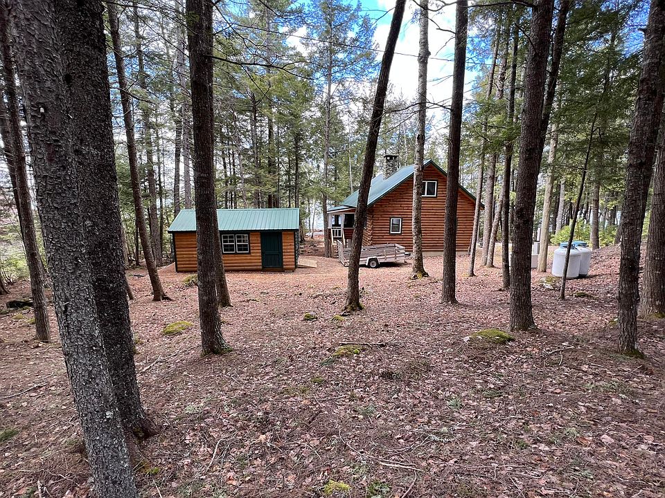 Year round pine log home on beautiful lakefront. Year round accessible, power, full foundation, oil hot air furnace, gorgeous stone fireplace. Two bedrooms and full bath. Second floor consists a loft area as a bonus room with the 2nd bedroom which is perfect for your guests. Road association for grading/plowing $200/year.