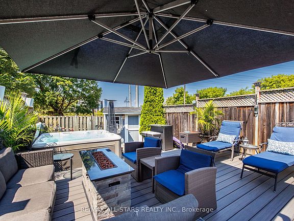 A spacious and versatile townhouse in the heart of North York. With 5 bedrooms and 4 bathrooms, this home has been thoughtfully designed to suit families of all sizes. From its custom floorplan featuring an open-concept kitchen with a sit-up central island to the inviting family room with a double-sided gas fireplace, every detail has been tailored for both style and comfort. A central dining room anchors the main floor, while a bonus room with an adjoining full bathroom offers the flexibility of a home office or an additional bedroom. Upstairs, four well-proportioned bedrooms provide ample space for family living, with a beautifully upgraded Primary Ensuite bathroom, while the fully finished lower level expands your possibilities with a dedicated entertainment area, full wet bar, sit-up island, full kitchen-style cabinetry, and cozy electric fireplace. A 3-pc steam shower (with heated floors!), lower-level laundry, storage and office space finish up the basement. Whether you're hosting friends for a movie night or enjoying quiet evenings at home, the layout easily adapts to your lifestyle. And just wait until you see the backyard! The outdoor living space is equally impressive, featuring a multi-level composite deck, pergola, and hot tub - an ideal setting for year-round relaxation and gatherings. Situated minutes from the new Eglinton LRT, transit, amenities and convenient highway access, the location is ideal for commuters!