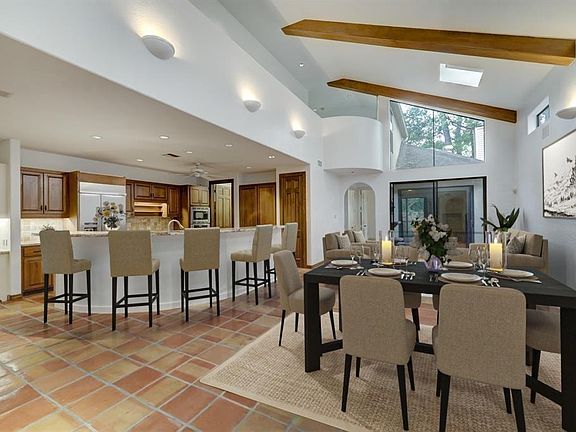 In a secure, picturesque gated community, this custom 2-story rustic home by George Ragsdale offers luxury and comfort. The warm entrance leads to bright, spacious rooms with rustic charm, ideal for both relaxation and entertaining. Features include an oversized living/dining area with an atrium, cozy family room with a gas fireplace, and a stunning island kitchen with marble countertops and top appliances. The master suite boasts a private balcony with scenic views, a steam shower, whirlpool tub, and 2 large walk-in closets. Three additional bedrooms offer flexibility, with one potentially serving as a second master suite. The home also includes a workout/media room, home office, and ample storage + cedar closet. Residents enjoy exclusive amenities like a gated pool, dog park, walking trails & new playground, plus a private driveway and oversized garage. The stucco was redone in 2021, and the home is zoned to acclaimed Spring Branch schools.