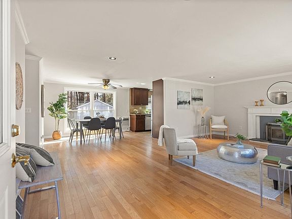 This expansive Ranch sits on a sizable level lot featuring a detached 2-car garage. Nestled in a neighborhood with easy access to Rt. 28's array of retail outlets and dining options, plus swift connections to Rt. 93. Inside the freshly painted first floor offers an open-concept fireplaced living room, dining area, and kitchen adorned with granite countertops and stainless steel appliances. Floor-to-ceiling windows in the living and dining areas flood the space with natural light. Adjacent to the kitchen lies a practical mudroom/porch area with a spacious coat closet. At the far end of the home awaits the primary suite featuring a generously sized bedroom with sliders overlooking the yard, a walk-in closet, and full bathroom. Two additional bedrooms boasting ample closet space & hardwood floors along with a full-size bathroom complete the main level. Downstairs you'll find 2 sizable rooms offering versatile usage options, laundry room, gas heat system and new tankless gas water heater.