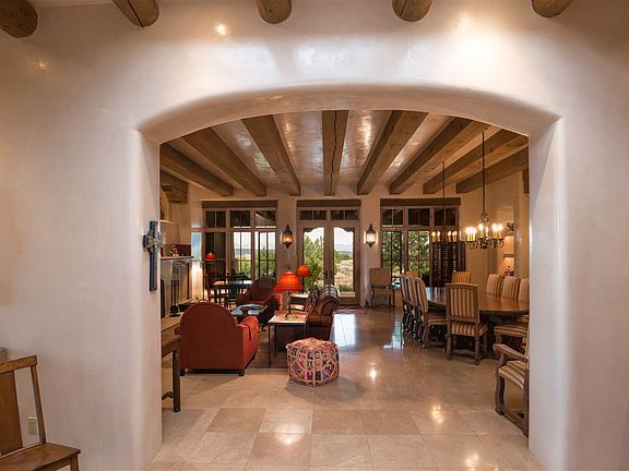 Welcome to another Sharon Woods masterpiece. This timeless home shows all the best of Santa Fe Style as interpreted by one of the finest builders in our area. The classic center hall plan opens on one side to an exquisite great room with views of the Jemez Mountains and the glorious Santa Fe sunsets. Turn a few degrees and you'll see the spacious kitchen and informal living and dining areas. The main house includes a master suite with a luxurious bath and spacious walk-in closet. Nearby is a well designed office/library. In a completely separate wing is a guest suite with its own bath. Completing the picture is a full one bedroom guest house with a separate entrance allowing your family or guests complete privacy. Add to all of this, the mature, waterwise landscaping and extensive portals surrounding the home and you have an elegant but relaxing home to entertain your friends or just enjoy Santa Fe Style at its finest. An Equity Membership to the Club at Las Campanas is available, but not required.