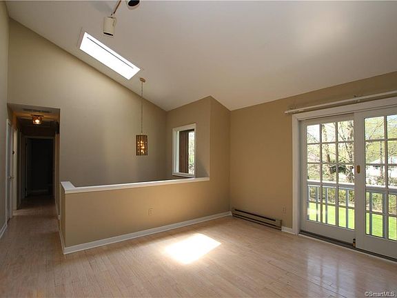 Sit back and enjoy the privacy this beautiful home delivers within a neighborhood setting. Sun drenched living space with hardwood floors, high ceilings and easy flow from one room to another. Living room boasts cathedral ceilings with skylights, fabulous brick fireplace and sliders to front balcony. Dining room shares the cathedral ceilings and natural light, plus sliders opening up to the rear deck overlooking the park-like yard. Master bedroom with en-suite bath, walk-in closet and sliders to deck. Two additional bedrooms and full bath complete the mail level of this light and bright home. Lower level offers large family room with wood burning fireplace, third bathroom and separate laundry room. 2 Car garage with interior access. Great location for commuting and shopping.