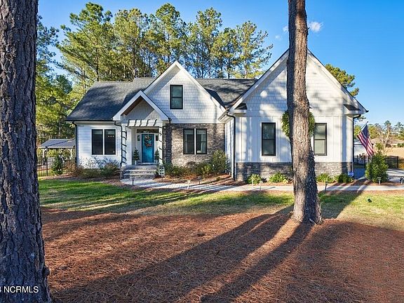 Less than 8 miles from famed Pinehurst #2! Seize the opportunity to own this better than new golf community home, before prices go up, when the US Open returns to Pinehurst in 2024 & future years. Home features 3 bedrooms/2 baths, one-level living, w/ finished bonus room up. Inside features hardwoods in living areas and primary bedroom. Secondary bedrooms are carpeted. Laundry room and baths are tiled. Kitchen features stand-alone island w/ bar seating, granite countertops, tiled backsplash, soft-close cabinetry & a chef's dream double-oven with gas cooktop. The kitchen opens to a sizeable living room w/ vaulted ceiling, gas log fireplace, and built-in book cases. Formal dining room features hardwoods, crown molding, and rustic chandelier lighting. Owner's suite boasts trey ceiling with crown molding, walk-in closet with upgraded wood shelving; en suite bath with double vanity, garden tub, and separate over-sized tiled shower. The attached 2-car garage has epoxy finished floor, transfer switch for future generator, and EV charger port. Outdoor living awaits, with luscious landscaping fed by an irrigation system. A lighted pergola is accessed by a concrete paver walkway and is prewired for ceiling fan. The gardens feature a variety of trees, plants & ornamentals, as well as some newly established berry vines, apple trees and newly installed evergreens for added privacy along nearby road. Enjoy views of the 17th hole of the Grey Fox Course, one of two 18-hole courses located within Foxfire Village. A large portion of the property to the rear of the home is fenced. The 12x10 storage shed, flanked by ornamentals and landscape timbers, conveys. An immense unfinished walk-in attic (not included in reported sq. ft.) provides storage galore. LP gas tank is leased. Ask agent for list of personal property items excluded with sale of home. A beacon of luxury, known as ''The Lights & Gardens of Foxfire.'' Act today to make this home yours!