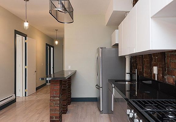 Absolutely gargantuan total renovation. HUGE living space with skylights, exposed brick, and premium kitchen. Five large bedrooms (one master with a private full bath and double-wide sink) ALL with big closets and windows. Three full bathrooms in total. In-unit laundry. Two blocks from gorgeous McGolrick Park with easy access to the BQE. Just jump on this monster of deal before someone else does! AMENITIES: Hardwood floors High Ceilings Exposed brick Washer dryer installed Granite countertops Stone countertops Stainless Steel Appliances