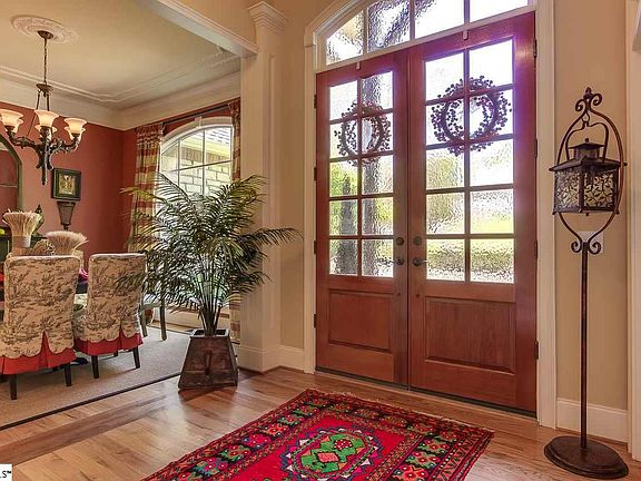 Truly impressive, this custom home in prestigious Sycamore Ridge is beautiful inside and out. Stone exterior, gas lanterns and oversize entry doors leading into vaulted foyer and open dinning room. Built in bookshelves in great room, library and office. Gas fireplaces, plantation shutters, hardwoods, and wainscoting on main floor. 11ft ceiling with coffered alder wood in great room. Vaulted ceiling with exposed beam and up-lighting in library with stately adjacent office. Kitchen has hand distressed cabinets, granite counters, 5 star 36" professional gas range, new Bosch dishwasher, pantry, and sunny breakfast area. Owner suite on main with trey ceiling with access to screened porch, bath with double vanity, custom tiled shower, corner Jacuzzi tub and oversize walk-in closet. Two car garage with cedar doors. New "loop" water heater with instant hot water. Laundry room adjoining kitchen with outside entry. Upstairs features 3 bedrooms, each with walk-in closet and direct bathroom access. Upstairs also has large bonus room, sunny craft room with sink and walk-in attic space. The beautifully landscaped backyard is perfect for entertaining and relaxing. Enjoy the 2-tiered stone patio, Brazilian Ipê hardwood on deck and screened porch, built-in gas grill, stone fire pit and shaded lounge area. Exterior landscape lighting front and back. Amenities include neighborhood pool, tennis courts, and clubhouse. Located near historic Fountain Inn, Fox Run Country Club, and just a short drive to the thriving downtown of Greenville, SC with its parks, shopping experiences, world class dinning and the natural beauty of the Upstate.