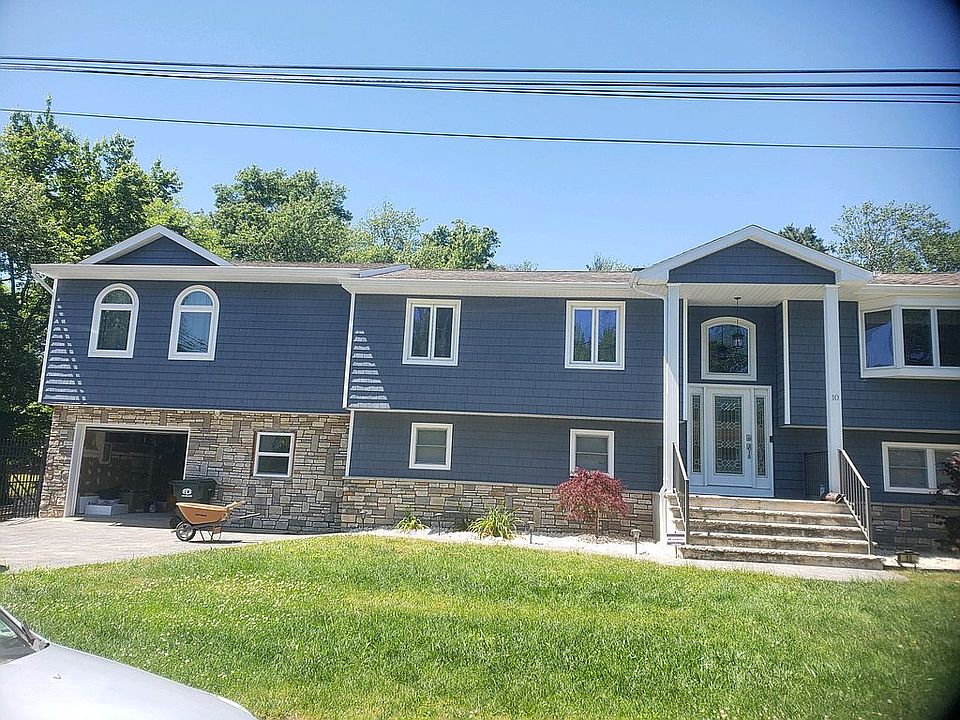 Spacious six bedroom home with great curb appeal in Candlewood development. The stamped concrete 3 car wide drive way can accommodate 6 cars, plus extra concrete pad, walkways and patio. The upstairs is an open floor plan highlighted by hardwood floor, bay window .The hardwood floor continues into the dining room area, with sliding doors that lead out to a 14x24 deck. The updated kitchen has stainless steel appliances, with wine and beverage refrigerator in the island,porcelain tile floor.The upper level has hardwood floors and stained woodwork throughout. The upstairs master bedroom was part of the renovation in 2017, is 16x28 with a compete sitting room and oversized master bathroom, and separate his/hers walk in closet. Laundry room is on main floor. On the lower level there is an open floor plan with completed eat in kitchen and family room with heatolator fireplace. There is a master bedroom with sitting room and also a second bedroom off the kitchen area.There is also an oversized 1 car garage. House was completely renovated in 2017.