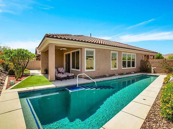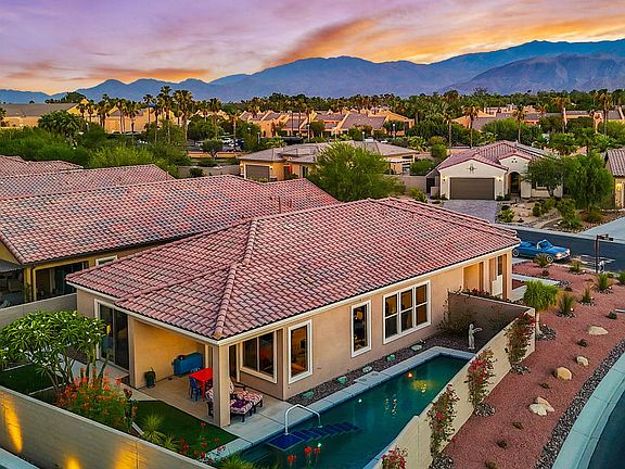 Embrace the Desert's upscale 55+ active adult community--Del Webb Rancho Mirage! PHASE 1 location, popular 'EXPEDITION' model, large, premium, corner lot. High 10' ceilings. Windows frame picturesque MOUNTAIN VIEWS. Backyard oasis. 'Swimmers' pool (40ft long) w/electric heat pump + chiller (extends swim season w/max efficiency). Low maintenance landscape enhanced by fragrant roses & Plumeria. Turf inset & mature plants. Large, covered patio. Gourmet kitchen: range w/air fryer; built-in micro w/steamer; warm wood cabinetry; oversize island, quartz counters, double sink; pull-down faucet; walk-in pantry. Open to dining & living room w/concert level surround sound. Tile flooring, plus high-grade Berber. Upgraded ADA ACCESSIBLE features give enhanced mobility to floor-plan--perfect for living & entertaining! Primary suite w/slider to backyard; spa-like bath, dual sinks, ROLL-IN SHOWER w/custom Mondrian-style tile, rain-head, upgraded 1/2 inch glass; spacious walk-in closet. Guest bath accessible from 2nd bedroom & front den/office. Laundry w/added storage. PLUS EV charger in garage. Leased 14-panel Tesla solar. Gated community offers world-class amenities to enjoy: 24-hr guard gate entrance, 6.5 miles of meandering pathways, Outlook Community Center, resort-style pool & spa, tennis, pickleball, bocce, fitness center & more. Stop searching and START living!