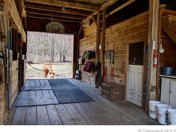 Exquisite Antique Farmhouse-Original Chestnut Wide boards. All Newer Windows, Newer Elec. & Insulation, 1296 S.F Original Post & Beam Barn with water & electric on 2.88 Acres. Bring your horses. Fenced in open Riding arena with built in drainage. Sunny Newer Kitchen with Corian Counters and Breakfast Bar, SS Refrigerator, Dishwasher, Gas Stove top. And wall oven. Formal Dining Room with Crown molding and Built ins. Large Formal Living Room, Crown Molding, with Large Brick Fireplace, Floor to Ceiling windows & Door to Private Patio. Cozy Den with Built in Cabinet and Shelves for your library. First Floor Laundry & Full Bath. Newer Master Suite with Full Bath & Sitting area. 3 Additional Beds with Guest Full Bath, New Furnace & oil tank. Open covered porch. Rich period Details. Chimney repointed, Newer roof, in the Heart of Desirable Pomfret. Bordered by Scenic stone wall on level corner lot