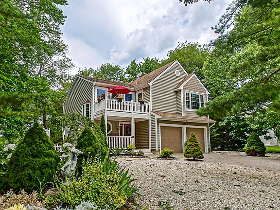 Don't just live in any house - live in your dream home on a lake! This well-designed waterfront home in prestigious Colony Lakes has exquisite attention to detail & comfort. Reverse living provides unimpeded views of serene lake & park-like grounds. The spacious living area is drenched in natural light. Amenities include 1st floor BR w/slider to lower deck, vaulted ceilings, hardwood floors, recessed lights, granite counters, pantry, laundry room, gas fireplace, ceiling fans, & more. The pièce de résistance is an expansive outdoor space with beautiful paver driveway & rear patio w/bar; white picket fence & arbor; 1 lower & 2 upper composite decks; a hot tub; an open porch; private dock, & oh, yes - magnificent views. See attached flyer for detailed features. Your fairy tale cottage awaits!