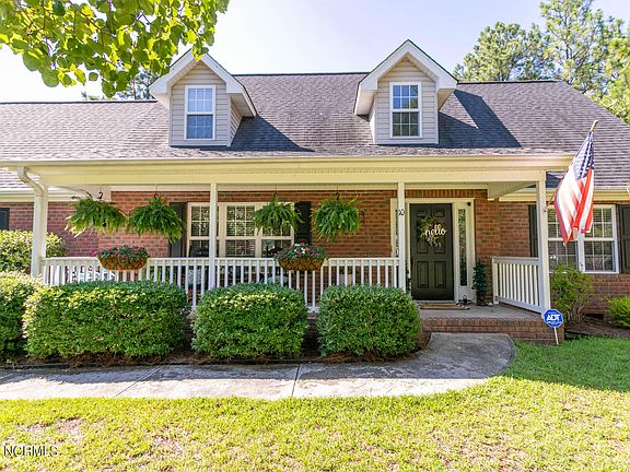 Situated on a double lot at the end of a quiet cul-de-sac in Pinehurst, this two-story colonial brick home has been lovingly cared for and offers lots of great features! It has a new HVAC system on both the main and upper levels! A spacious living room opens to a wonderful gourmet kitchen with granite countertops, beautiful porcelain backsplash, wood-stain cabinetry, and stainless-steel appliances. A formal dining room features custom built-in drawers with decorative tile display space with wine rack, gorgeous chandelier with ceiling medallion and chair rail trim. French doors open to a bright Carolina room with window walls. The main level primary suite has a large bedroom, en-suite bath with double sink, furniture-like vanity and walk-in closet with lots of built-ins. The main level also has a powder room. The upper level has three bedrooms and a full bath. The closet in one of the bedrooms has beautiful built-in chest of drawers and a hidden storage space tucked behind it. A large, fenced backyard offers lots of privacy and room to play, fire pit area, and brick paver patio. It is in a great location with easy access to Pinehurst and Southern Pines without going through the traffic circle. It is perfect for a growing family or for family and the grandkids to visit! This home is priced to sell!