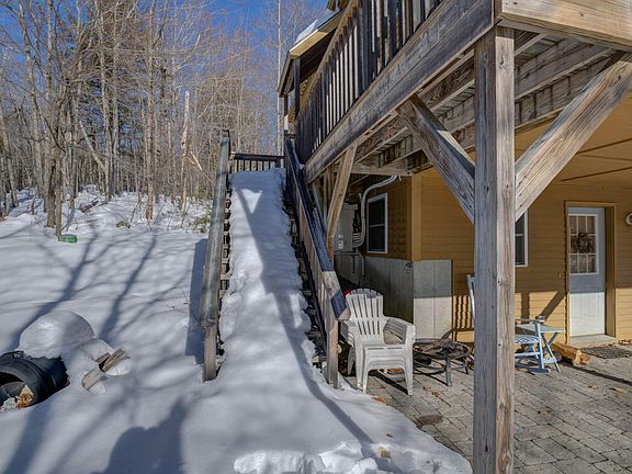 Not just a home but a lifestyle! Spectacular Pleasant Mountain Views. The mountain lights sparkle at night through a wall of glass on the view side of the house. Skiing is just five minutes away. Public access to Moose Pond is only 2 miles away. Public access to Highland Lake beach and Bridgton village is just a short drive as well. Open floor plan with soaring vaulted ceilings. Waterford stove in the living room for those chilly nights after skiing. Glassed in porch on the view side is four season. Large primary bedroom with full bath. Two bedrooms on the main level and a bonus room set up as a bunk room for overflow. Room for everyone!