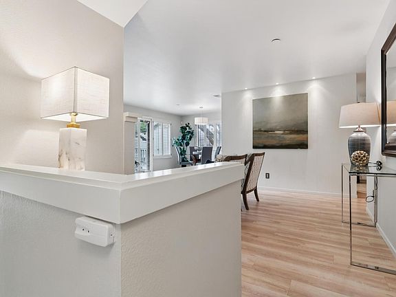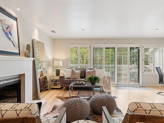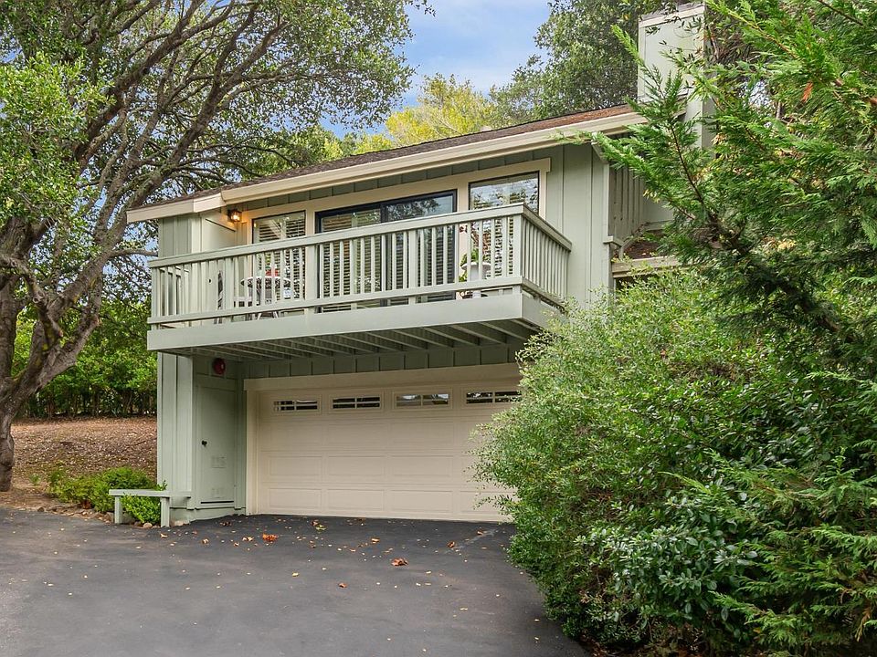 Ultra private, this fully-detached stand alone townhouse is nestled among the trees in the Quarry Meadows PUD community. Located at the end of a cul-de-sac, the nearest neighbor is 35-feet away, with only forest to the back and one side. Inside, the contemporary home is bright and inviting, with lots of windows and greenery outlooks. The spacious living room is warmed by a cozy fireplace, while the living room and dining area open onto a large front deck. The updated kitchen has stainless appliances and great natural light. The spacious primary bedroom with ensuite bath, opens onto a private deck. That deck wraps around to a third patio/deck facing peaceful open space. The second bedroom has built-in office cabinetry where you can work in a tranquil setting listening to the rustling trees. There is a second full bath and ample closet space. The 2-car attached garage with interior access has an abundance of built-in storage. Ideally located near award-winning schools, the Corte Madera Library, Peet's, and the restaurants and shops of Corte Madera Town Center and the Village.