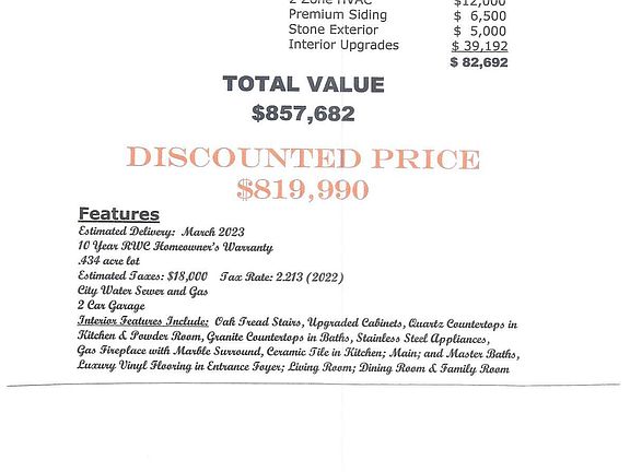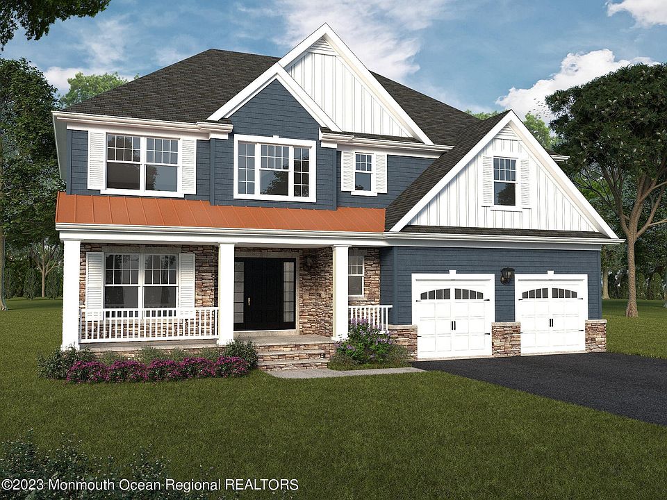 Beautiful new construction on a lovely private circle at Hawke Pointe in Howell Township! This 2703 sq ft colonial is under construction and ready for occupancy approx. March 2023. Many upgrades included! This home sits on a premium lot backing to wooded area with premium siding and stone exterior. Spacious kitchen with upgraded cabinets, stainless appliances, quartz counters, center island and tile floor. Huge master bedroom with 2 walk in closets and full master bath with soaking tub. Luxury vinyl flooring in foyer, LR, DR and family room. Gas fireplace included with marble surround in the family room. Oak Tread stairs, 2 car garage, 2nd floor laundry room, city water and sewer and gas heat are some of the special features of this lovely home! Quick delivery approx. March 2023.