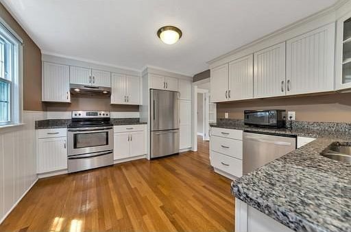 Warm and inviting best describes this impeccably maintained Cape, with ample room for all. Beautifully updated thru-out, including a positively gorgeous kitchen with granite counter tops, newer cabinets and stainless steel appliances (2013). The completely remodeled 4 Season Sun Room (2015) is great for relaxing or casual dining and offers a charming high top for both. A newer oil tank, freshly painted rooms and main bath that has been renovated. There is a spacious living room and formal dining room for entertaining. Amenities include central air, gleaming hardwood floors, alarm, replacement windows, plus a 4 zone irrigation system. Enjoy the private fenced in backyard plus the ambiance of this wonderful neighborhood. There is nothing to do but move in. Open House Sunday, 5/28 from 11-1.