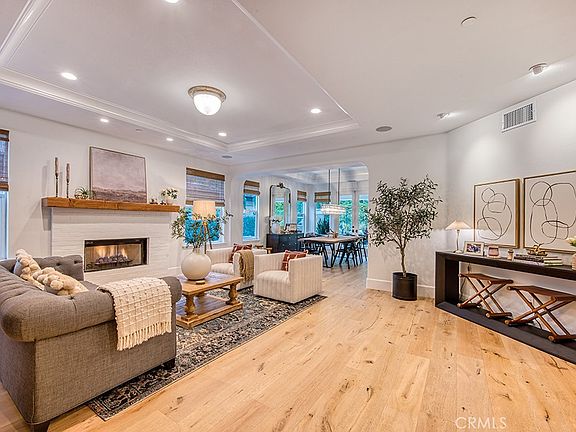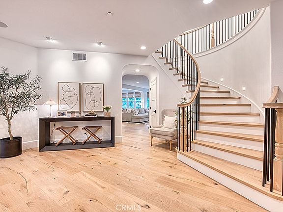 Welcome to luxury living in Coto de Caza! This stunning 4,850 sq. ft. home, nestled on a corner lot in a serene cul-de-sac, offers the epitome of modern elegance and comfort. Experience the convenience and sustainability of paid-off solar panels and a low maintenance yard, coupled with a new roof. The backyard offers a private oasis, where a sparkling pool and spa beckon for relaxation. Sharpen your putting skills on the pristine putting green, or entertain guests on the expansive patio. Inside, you will find an array of impressive features including French white oak floors throughout, 17 in-ceiling speakers, a state-of-the-art movie theatre, and so much more. The gourmet kitchen features a walk-in pantry, high-end stainless steel appliances including a wine & beverage fridge, and a generous island for culinary creations and casual gatherings. The expansive living areas, including the formal dining and cozy family room, offer versatile spaces for hosting guests or unwinding with loved ones. The main level also boasts a guest suite, spacious laundry room, private office, and powder bath. Make your way upstairs to the luxurious master suite, complete with a private balcony overlooking the picturesque surroundings, an expansive retreat with a dual-sided fireplace, and a spa-like en-suite bathroom with an oversized walk-in closet. Three additional bedrooms and two secondary bathrooms (including a jack and jill with private vanities) are situated down the hall. Enjoy movie nights in your very own custom theater featuring 10 speakers, plush custom chairs and a massive 140" screen. The theater is complemented by thick pocket doors for an immersive experience, as well as convenient amenities like a bathroom, microwave, beverage fridge, and wet bar. Additional features include new solid core doors and hardware, a renovated garage with built-ins and epoxy floors, a whole-house re-pipe, tankless water heater, and hardwired security cameras with onsite server and commercial grade Ubiquity WiFi system. Whether you're relaxing by the pool, enjoying a movie night in your custom theater, or perfecting your putting stroke, this home offers the ultimate in luxury living in Coto de Caza.