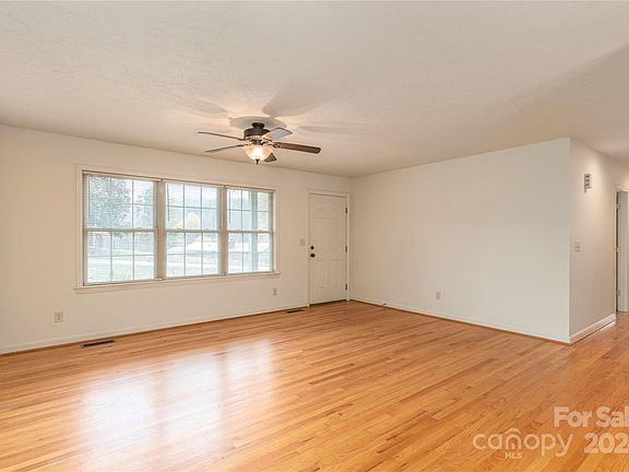 A true gem! This charming single-story home sits on a spacious, level lot in the heart of Weaverville. As you approach, you'll notice the inviting sidewalks and decorative fencing, guiding you to the front door. Step inside to discover the warmth of refinished original hardwood floors and a sunlit living area with abundant natural light. The flexible layout includes four rooms, perfect for bedrooms, a den, or an office, each with ample closet space. The master suite features a full bath and double closets for extra storage. Quality details shine throughout, from the durable concrete siding to the cream-colored replacement windows. Out back, a massive deck awaits your gatherings, complete with plenty of space for grilling and entertaining friends.