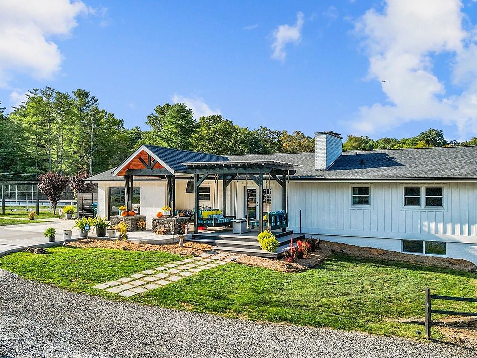 Welcome to 10 Thistledew Ln, where this renovated home sits on 4.6 acres along Ledbetter Road, offering convenient access to Biltmore Park, the burgeoning Asheville airport, and the charm of south Asheville. This property boasts a plethora of amenities—embrace recreational diversity with your private pickleball court, tennis, and basketball facilities. Equine enthusiasts will appreciate the four stables beneath the barn, while those who prefer golf can practice their swing on the putting green or driving range. Your furry friends will love the newly constructed dog kennel. Unwind by the fire pit or soak in the hot tub, and transform your front porch into a cozy cinema with swinging beds. Featuring three bedrooms upstairs and a complete secondary living space downstairs, with exterior entrance, this home is an ideal candidate for a short-term rental investment or your forever home! See video: