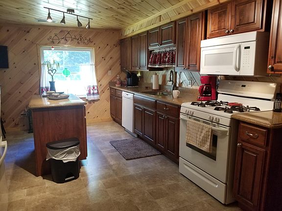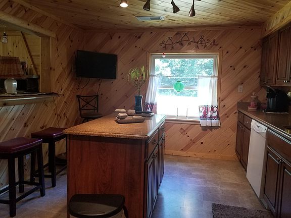 2 bedroom 1 bath Permalog on no outlet paved street near the Mio ''backwaters''...This home features a steel roof, updated kitchen with soft close cabinets and granite counter tops, a high efficiency furnace, central air, large gazebo, and insulated pole building with attached garage and 5 in well