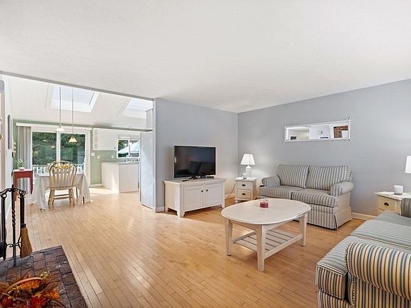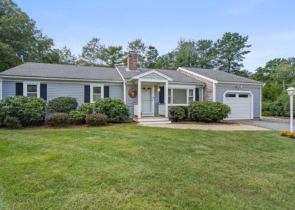 Live the life you've always dreamed of! Fabulous year round or vacation home located in Waquoit Farms. This updated Ranch is located just minutes from Waquoit Bay Reserve, Mashpee Commons, Falmouth Center, Woods Hole, Beaches & Ferry to Nantucket & Martha's Vineyard. Located on a cul de sac with a very private serene back yard. Sit on your deck or patio with a cup of coffee or let the stress melt away after a long day with a glass of wine! Sun drenched vaulted ceiling eat in kitchen with skylights, white cabinetry & hardwood floors flows into a beautiful fireplace Living Room. Master Suite with hardwood & new double sink vanity in the Master Bath. Two other bedrooms & convenient 1st floor laundry! Up Dates throughout including up dated kitchen, 6 yr old roof & solar panels for energy efficiency, front siding 5 yrs old, windows 16 yrs old, central air, 1 car garage, removable exterior side stairs for a camper or boat storage & huge dry basement waiting for your finishing touch!