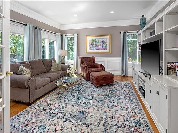This beautiful home offers one of the most PRIVATE lots at Black Rock and one of the LARGEST back yards, all at the end of a quiet cul-de-sac! You will be amazed by the expansive lawn, deck and patio spaces complete with stone walls, built in grill and gas fire pit. OPEN floor plan where the dining, living and kitchen flow beautifully for entertaining. Large white kitchen w/quartz countertops and high end appliances, spacious family room with vaulted ceiling and fireplace and dramatic dining room with walls of windows. Comfortably sized den offers a cozy get away space. First floor master w/marble bath and spacious walk in closet and second en-suite bedroom complete the first floor. Upstairs there's a third bedroom w/bath and open loft space currently used as an office. The WALK OUT lower level offers great natural light, 2 guest bedrooms w/full bath, a great room, game room, and gym! 5 PARKING SPACES (a rarity at Black Rock) and an easy stroll to club amenities!