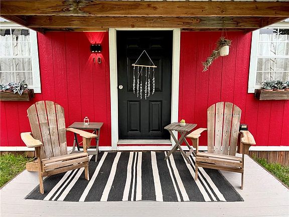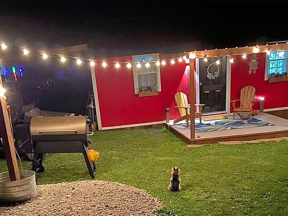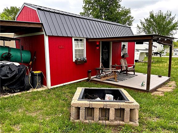 Here is the perfect set up for a lake getaway with so much curb appeal! This adorable tiny house greets you with outdoor living space - a covered porch with composite decking. Inside you’ll see defined spaces to meet all your needs. Each end of the tiny house has a loft bed. Under one loft is a living area. Under the other loft is a your kitchenette which offers counter & storage space! Between the living area and kitchenette, is space that’s being used for a dining area. Next to the kitchenette, walls and a stylish sliding door create privacy for your portable toilet & sink combo. The lean-to outside provides covered storage. The fire-pit stays so you can enjoy evenings sitting by the fire and making memories! There's a window AC unit and a space heater. There is an RV on the property that is being sold separately fsbo.