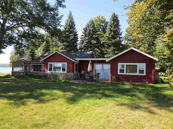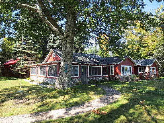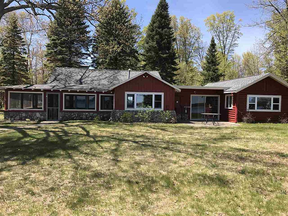 HIGGINS LAKEFRONT, Classic log cottage with spectacular location on Treasure Island, gorgeous lake views. Includes 5 bedrooms, 2 baths, stone fireplace, hardwood floors and a wrap around screened in porch over looking the lake. Cottage has had many updates yet retains its original log style. Enjoy the serenity of island life and a great location close to mainland dock. Adjoining lot situated on a point with approximately 400 running feet of lake frontage is included in this listing and can be used as a separate building site if desired. Total lake frontage of over 500' with panoramic views, spacious area for recreation, and beautiful sandy beach.