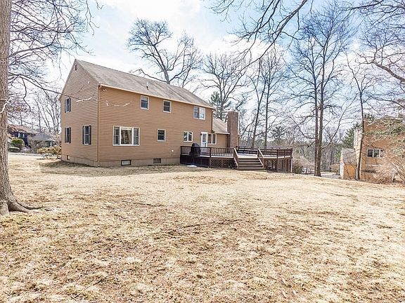 This Classic 4 bedroom, 2.5 bath Garrison Colonial is set on a large, beautiful lot in the highly desired neighborhood of Treetops Lane. Features include a wonderful floor plan with a front to back living room, formal dining room, an eat-in kitchen, first floor laundry room, and a family room with a fireplace and cathedral ceilings. There is a large deck off the kitchen that overlooks the private backyard. The second floor offers 4 generously sized bedrooms all with closets, and a primary bedroom and bath. There is a cedar closet outside of the family bathroom. Large attic space and lower level for storage. Two Car Garage. Blue Stone Walkway leading into the home. Showings start at the Open House.