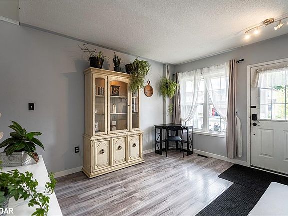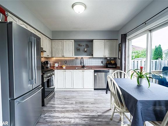 BEAUTIFULLY UPDATED FAMILY HOME IN A SOUGHT-AFTER ANGUS LOCATION CLOSE TO SCHOOLS, PARKS, TRAILS, & EVERYDAY AMENITIES! Located on a quiet, family-oriented crescent just steps from schools, trails, the Nottawasaga River, and Greenwood-McCann Park, this beautifully maintained 2-storey link home combines curb appeal with modern upgrades and a prime location. Enjoy quick access to downtown Angus in only 7 minutes, as well as Barrie, Wasaga, Stayner and Alliston for added convenience, plus the benefit of school bus service right at your doorstep. Boasting a welcoming covered front porch, neat landscaping, an attached garage with an automatic opener, and a fully fenced backyard with a newer large deck, garden beds, mature trees, and plenty of space for children, pets and entertaining, this property is designed for family living. Inside, the bright open-concept main floor features a spacious living room and eat-in kitchen with oversized backyard-facing windows, a walkout to the deck, and a stylish newer powder room, while the upper level offers three generous bedrooms - including a primary retreat with walk-in closet - and a full 4-piece bath. The full, partially finished basement showcases sleek exposed aggregate polished concrete flooring, a versatile rec room, laundry, additional storage, and a rough-in for a future bathroom. Recent upgrades include modern laminate flooring on the main level, epoxy finishing on the garage and front porch, a refreshed roof, and newer appliances including a fridge, stove, dishwasher, washer, dryer, and upstairs toilet, all adding excellent value. Don’t miss your opportunity to make this beautifully updated #HomeToStay yours, and enjoy the perfect balance of comfort, space and convenience every day!