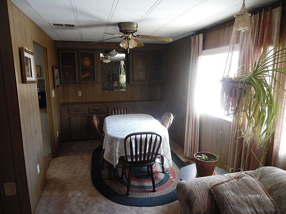 This 1974 Fleetwood Manufactured home has over 1200 square feet, 3 bedrooms, 2 bathrooms and comes partially furnished. Privately owned since the early 80's this home has loved and lived in. Large covered parking allows you to come into the home through the side kitchen door. Large covered front patio provided privacy and entrance into front door of home. Carpet though out, window coverings included, furniture included as well (unless buyer has other furniture), new heat pump, new hot water heater, new oven. Financing is not available for a home this age so buyers will need cash.