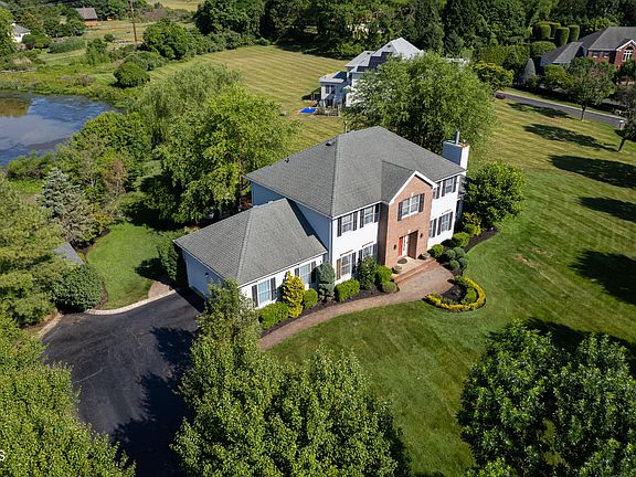 Relocation Confirmed, Discover the charm of this 4-bedroom, 2.5-bathroom Center Hall Colonial home located on a cul-de-sac in sought-after Colts Neck, NJ. Situated on 2.5 park-like acres with a serene pond view, this property offers a country-like living experience. The house features elegant hardwood floors throughout, a formal living room, and a dining room perfect for entertaining. The eat-in kitchen boasts white 42'' cabinetry, quartz countertops, SS appliances and a farm sink. The great room has a vaulted ceiling and a wood-burning fireplace, creating a warm and inviting atmosphere. The first floor impresses with 9 ft ceilings, enhancing the sense of space and luxury. The upper level offers Four spacious bedrooms. The full finished basement features luxury vinyl planks and a separate entertainment room, providing extra living space. Outdoors, enjoy the large paver patio and a charming gazebo, perfect for relaxing and taking in the beautiful surroundings. This home combines elegance and comfort in a peaceful, picturesque setting.