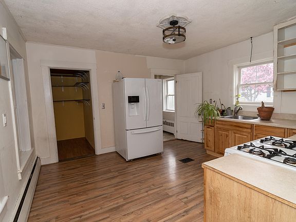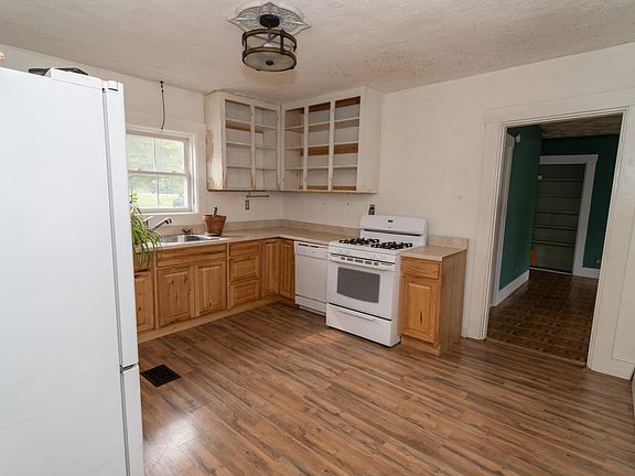 South Gardiner ~ 3 bedroom Farmhouse with 1+ car garage. Nice sized eat-in kitchen with a pantry. Livingroom has a stone hearth with woodstove to keep you warm and cozy. Upstairs features 3 bedrooms plus a 4th room that could be a home office. Laundry room on first floor. Three season porch. Newer metal roof on house. Pellet stove in the basement to help with heat. Just 6 miles to the highway and 5 minutes to historic downtown Gardiner!
