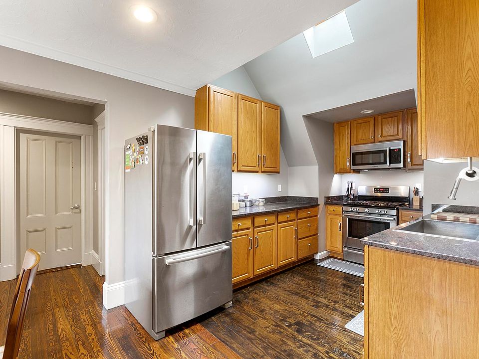 Available 9/1 - No broker fee due to listing agent. This distinguished residence, in a historic mansion, is anything but a cookie-cutter apartment. With an abundance of natural light, this top floor unit offers spaciousness and elegance, showcasing an expansive open-concept layout between the living and dining areas. The gourmet SS kitchen, deep sink, energy-efficient appliances, and granite countertops is sure to please. Step out onto your private deck, overlooking the tranquil tree-tops. Two generously sized bedrooms w/ample storage and sunlight. Additional storage space in the basement. 1 exclusive off-street parking space and easy on street parking. 2 blocks to the Shawmut Red Line station and moments to restaurants, Target, shops, and more. First & Security Deposit due at lease signing and credit score above 700 to be approved. 12+ Months
