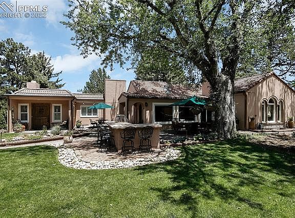 1.02 ACRE * STUCCO * TILE ROOF * BUILT-INS * LUSH GROUNDS * VIEWS GALORE * MANY UPDATES * PRIVACY WALL * WOOD FLOORS * GARLAND COMMERCIAL GRADE RANGE * WORK SHOP* AC * PLANTATION SHUTTERS * CUSTOM CLOSETS * PRIVATE OFFICE/BEDROOM * 2 FIREPLACES * RADON SYSTEM * WINDOW SEATS * PALLADIAN WINDOWS * MATURE TREES * 6 INCH COPPER GUTTERS A Mediterranean masterpiece in the heart of the Broadmoor Heights community. This home has many architectural interests and showcases exceptional craftsmanship. As you enter, you will be dazzled by the elegant foyer with a stunning pony wall ideal to display an art collection. The family room oozes ambiance with windows galore, plantation shutters, artful alder wood built-ins, window seats and wood floors. Views of the mountain vistas as well as city views that sparkle all evening are just one of the special features of this 1 acre lot. The master bedroom has been updated to include gorgeous his and her custom built-in closets and the tucked away bathroom boasts artisanal style double vanities, warm hues, walk-in spa-like shower and laundry closet with stackable system. The kitchen is a gourmet's delight with a commercial Garland range, Sub Zero Refrigerator, ice maker, limestone surfaces, glass cabinetry and more! The lush oasis of the grounds is second to none! Exterior lighting, outdoor kitchen with Napoleon Grill, concrete built-in bar area, loads of nooks and crannies for different dining options make for a magical experience. The breezeway between the kitchen and dining room has endless options but will be wonderful for a happy hour or enjoying a morning coffee. The grand formal living room is a nod to yesteryear with arched entryways, Palladian Windows, oversized gas fireplace with marble hearth, coved ceilings with lovely moldings. The adjacent two bedrooms share an art deco style bathroom and each have ample closet space and a coveted hallway built-in for convenient storage.