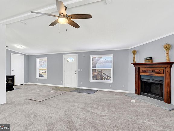 Welcome to 10 Vagabond Dr, Middletown in Harborton Estates. This double-wide manufactured home has been completely renovated. With new tilt-in double-hung vinyl windows, doors, luxury vinyl flooring, carpeting, baths, laundry, and kitchen. There is a new gated deck where you can sit and relax. Newer roof, seamless gutters, and AC unit. The home has a real wood fireplace and a pellet stove for additional heat. Very affordable living. 12' x 12' shed. This home was originally a 3 bedroom, now a spacious 2 bedroom. A wall or door could easily be installed where the primary bedroom entrance is. Or a wall could be installed inside the main entrance door and the pellet stove removed for extra bedroom space. The possibilities are endless if you need to expand. (The side lot is vacant, the seller was told they can use it if they maintain the lawn). Buyer to confirm usage with the Park.