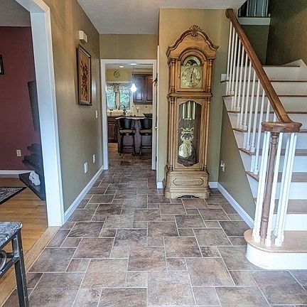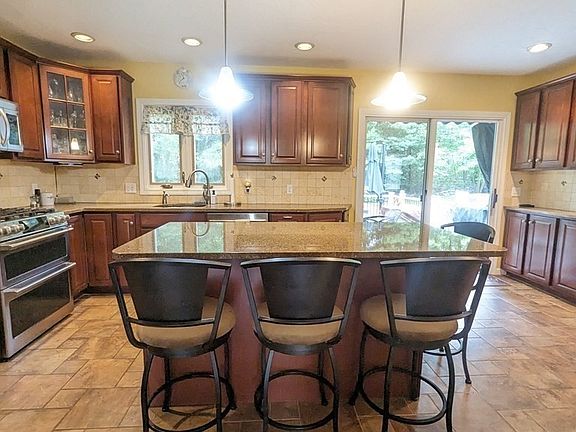 Open house Sunday 9/24/23 12-2pm. Beautiful classic center entrance colonial w/dentil moldings is set upon a dead end st. Enter the tiled foyer, livrm has walk out bay, surround sound & hdwd, dnrm has hdwd & walkout bay, kitchen remodeled 6 years ago has tile floor, center island, cherry cabs, granite counters & extra buffett wall & slider to expanded trex deck w/ awning, fireplaced fam rm with hdwd and a large 1/2 bath with laundry area finish out the 1st flr. 2nd flr has 4 large bedrooms & 2 bathrooms. The main bedroom has a huge walk in closet and an amazing new bathroom with dbl sinks, tile flr, bluetooth exhaust fan does music & colored lights, heated towel rack too! Finished room is lower level and still tons of storage space too! Gas heat, central a/c and 2 water heaters so you'll have plenty of hot water! Central vac. Pride of ownership shines in this well cared for home! New shed. Large 2 car garage