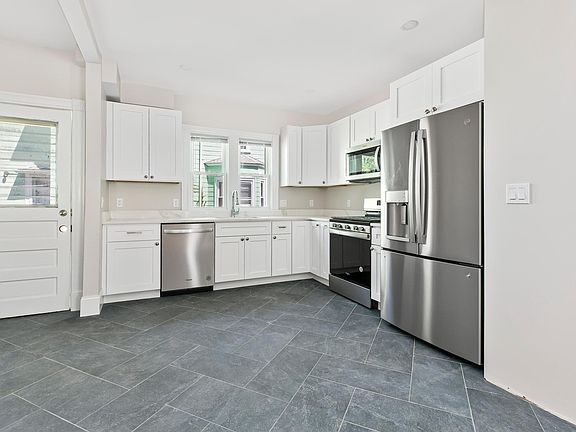 This 4 bedroom, 2.5 bath single-family home in Ashmont is a mix of old world charm with all the modern updates- includes flowing first floor with foyer entrance, living room and dining room with large kitchen and 1/2 bath. Then 2nd floor is 4 bedrooms or 3 bedrooms with home office and brand new bathroom. Then top level is master suite as 5th bedroom, bathroom with shower stall and another WFH office & 3+ car driveway parking and patio area. This home was renovated in 2022, including bathrooms, kitchen, windows, roof, etc. All brand new kitchen appliances, gas cooking, fantastic storage, recessed lighting and MORE. Conveniently located steps to Cedar Grove and Ashmont T stations, Dorchester Park, plus popular bars/restaurants in both Adams Village and Lower Mills. First, Last and agent fee. Note: pictures are before the floors are done, floors being refinished now.