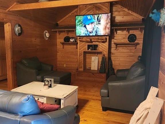 Looking for a cozy cottage? This is a must see log cabin in the country. It is a 2 bedroom 2 bath cabin style home in Deville. It is built with cypress planks inside and out along with the privacy fence outside. This home features a cozy living area that is open to the dining and a galley style kitchen. The bedrooms are located off the living area. There is a porch that wraps around three sides of the home. To the right of the home is the 2 car carport with an outdoor kitchen attached so you don't have to heat up your home when cooking. To the left of the home you will find a 36x27 shed/workshop to store all your tools and outdoor equipment.