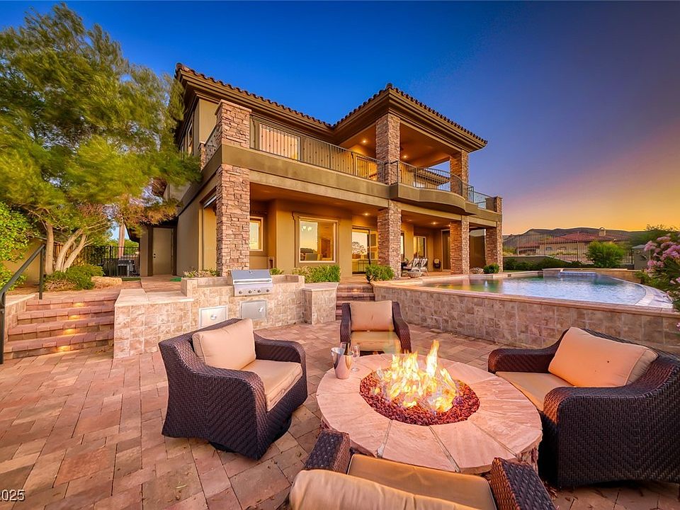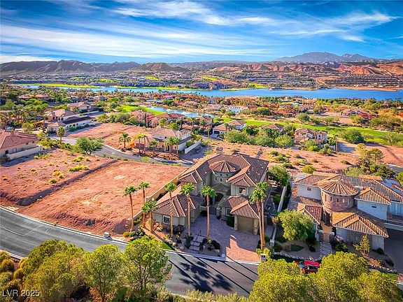 Experience breathtaking golf course, lake, and mountain views from this custom Mediterranean estate in the guard-gated Siena community of SouthShore, Lake Las Vegas. Enter through a private courtyard into a home filled with timeless elegance—arched entryways, travertine floors, and rich wood and stone details. Designed for entertaining, it features a formal dining room with wet bar, private office, home theater, and a chef’s kitchen with granite counters, center island, butler’s pantry, and breakfast nook. The luxurious primary suite offers a fireplace, sitting area, walk-in closet, spa-inspired bath, and balcony. Outdoor living is unmatched with a covered patio, built-in BBQ, fire pit, and infinity-edge pool/spa. Additional highlights include an elevator, wine storage, multiple fireplaces, and a private sauna. Lake Las Vegas, recently voted the Best Master-Planned Community, offers 320 acres of water recreation, fine dining, and outdoor concerts—an exceptional lifestyle awaits.