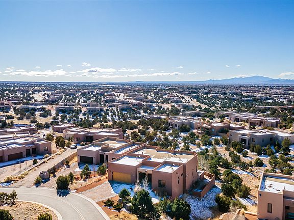 Five year old Tessera "Pinon" home on a quiet cul de sac with glorious views. This Santa Fe style home features vigas, kiva fireplace with 3 bedrooms, one full bath, one 3/4 bath and one half bath on .35 acres. Newer hot tub to enjoy the sunsets. Open kitchen with granite counter tops and stainless, energy star appliances plus a walk in pantry. Tiled floors throughout, insulated windows with window coverings and blown in recycled cellulose insulation for energy efficiency. Nicely landscaped with an enclosed back area with an accented flagstone walk way. Attached two car garage. Access to walking trails, downtown Santa Fe, movies, shopping and 599 to I-25.