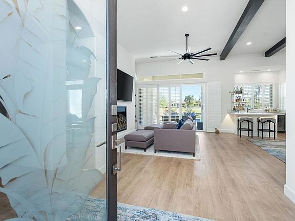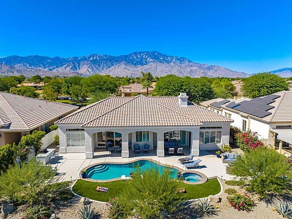 Welcome to Mira VIsta, one of Mission Hills Country Club's most desirable guard gated communities. Everyone will appreciate the impeccable craftsmanship and attention to detail on this beautifully remodeled home. This rare beauty features 4 bedroom en-suites including a detached casita, entertaiment room/den, and for those who love to entertain, a wonderful island kitchen overlooking the large living & dining areas and the recently resurfaced pebble tech pool & spa, with fabulous golf course views, but private. Other outdoor features in this beautiful backyard include a new built-in BBQ,, and multiple entertaining areas including a firepit and a separate firebowl, expanded pool deck, and a large lawn area. There is also newer pool equipment and new landscaping throughout the property and a 3-car garage. Inside, enjoy newer custom cabinetry and Quartzite countertops throughout, full length wine ref, 4 new bathrooms, fixtures and flooring. This is a MUST SEE!! Unlike most homes that need extensive upgrades. You can even watch the infamous Aqua Caliente 4th of July Fireworks show from the comfort of your own backyard. (See Photos), Best of all, furnishings are negotiable outside of escrow.