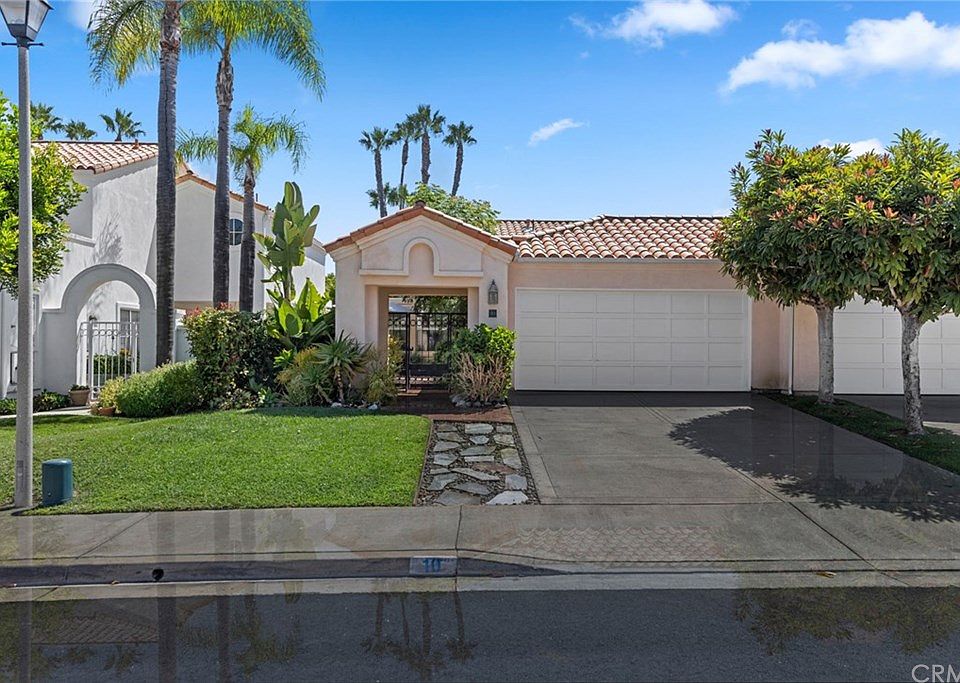 SINGLE LEVEL GEM, NO INTERIOR STEPS, COASTAL DESIGN, HIGH CEILINGS, GREAT ROOM LIVING AREA, FRENCH DOORS AND GATED ENTRY LOCATED IN MARINA HILLS! Highly desirable single level floor plan featuring 2 bedrooms and 2 bathrooms, lots of windows and natural light, neutral colors and an indoor outdoor atmosphere. Interior highlights include slate flooring in the living and dining room, new wide planked laminate distressed floors in secondary bedrooms, new designer style black framed mirror closet doors, NEW AC and FURNACE (2019), ceiling fans and epoxy lined pipes. A great room living area with high ceilings, fireplace and French doors opening to a private backyard. Kitchen with lots of windows, in kitchen dining area, painted cabinets and lots of countertop space. Large master bedroom with French doors leading to a quaint outdoor setting. Master bathroom with a walk in closet, dual sinks and walk in shower. Interior laundry room with cabinets. 2 car garage with overhead storage and pull down ladder. Private, gated courtyard entry and low maintenance backyard retreat with grass area and gas line for a BBQ. Perfectly situated across from Parc Vista Park with playground, grass area, canyon views, and nearby trail access to Salt Creek Beach trail. Located in Marina Hills with a LOW HOA of $155/month and access to resort style amenities including Olympic size pool, spa, tennis courts, clubhouse and more. The perfect beach close single level home you have been waiting for!