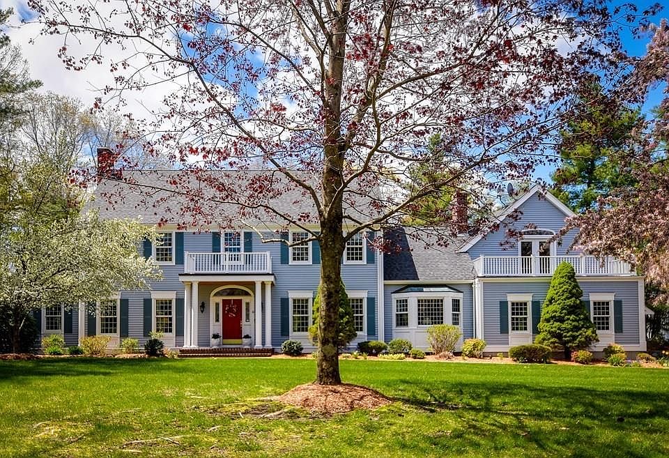 Elegantly sited and conveniently located in highly coveted walk-to-town neighborhood! This proudly maintained meticulous Center Entrance Colonial boasts natural light filled rooms and gleaming hardwood floors throughout. A gracious 2-story foyer with turned staircase, stunning fireplaced living room, and dining room welcome you to this pristine 4 bedroom home. French doors lead to private first floor office. Eat-in kitchen with island & bay windows flows to cathedral fireplaced family room including a wet bar and outdoor access. Grand Master bedroom features Juliette balcony, large en-suite bath & walk-in closet. Also upstairs is 2nd floor study or sitting room, 3 additional spacious bedrooms, plenty of closet space, family bath with double vanities and laundry room. Finished lower level offers full bath, recreational space, cedar closet & more. Recently updated systems & roof. 3 car garage. Excellent opportunity to get into Dover's top ranked schools. 15 miles from Boston!