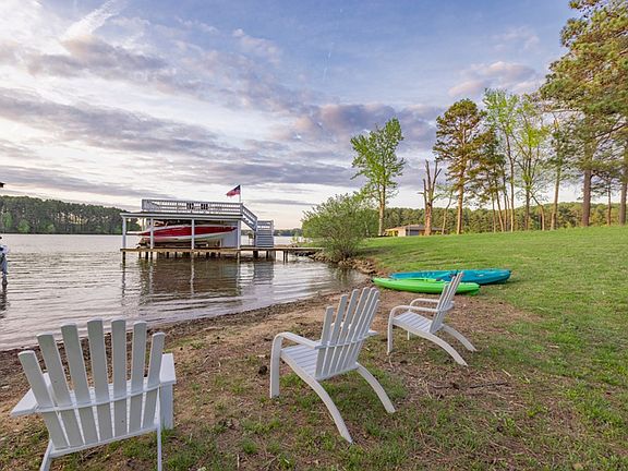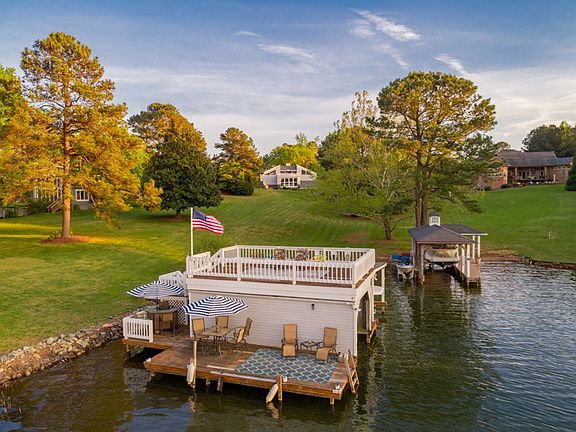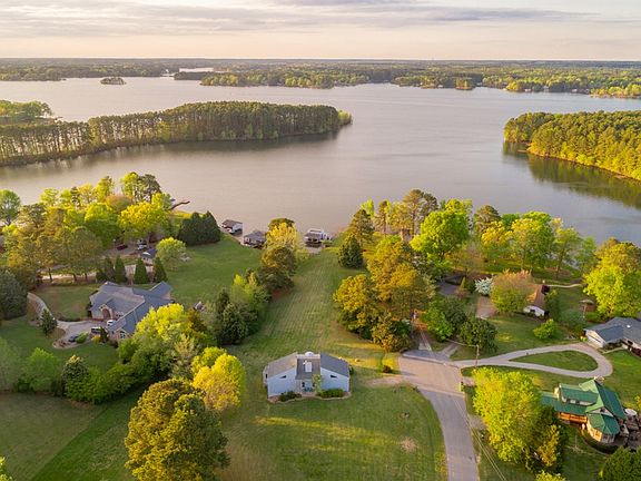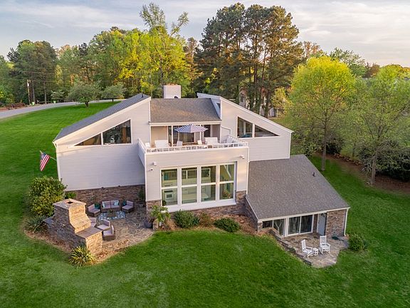 Perched overlooking Lake Gaston, this extraordinary Custom Mid Century Modern masterpiece built by modernist designer, BA Farrell. Just off the main lake with 125' of shoreline with private sandy beach, boat house w/ 2 boat lifts, & 1.7 ACRES PRIVATE landscape. (2 large lots with option to build on 2nd lot). Open floor plan, high ceilings, 3 fireplaces, 2nd floor balcony, game room, sunken conversation room, kitchen with large center island, & large lake view outdoor stone patio with fireplace are features of this unique home. Most windows recently replaced for energy efficiency and new flooring. 2 lake view Owner Suites & Lake view undesignated Room currently used as a bedroom. 1.5 hour from Raleigh NC and Richmond VA makes it easy to get to and hard to leave. First time for sale since built...this truly special offering selling AS-IS. Come See!