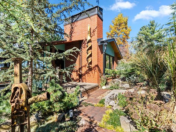 The LR features a vaulted ceiling and the original brick fireplace with custom steel mantle. High end appliances grace the modern kitchen with quartz counters and stainless steel backsplash. Views from the sun room with floor to ceiling windows and vaulted ceiling. Bright, heated walkout lower level hosts a bedroom, bathroom, semi finished laundry area, studio (also with mountain view), and garage. This level could easily be finished as an STR (buyer to confirm)
